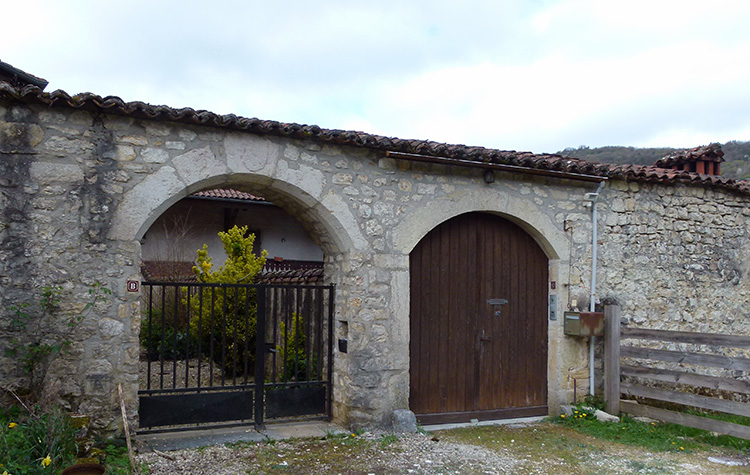 Cette pierre de réemploi est située au dessus d'une porte d'entrée d'une maison d'Ambronay. L'écu représente les armes de la famille de LA COUS, seigneur de la Verdatière, de la Vérruquière, Chenavel, Genoud et La Cous. Claude de LA COUS, né vers 1573 et décédé le 4 février 1614 et prieur de la Boisse, membre du sénat de savoie et juriconsulte à Chambéry. Il est abbé de l'abbaye d'Ambronay, lieu où il repose. Il porte : d'azur à trois hérissons d'or, 2 et 1. P.S. cette famille n'a aucun lien avec le village de Lacoux sur le plateau d'hauteville-Lompnes. |