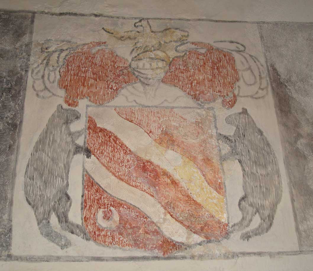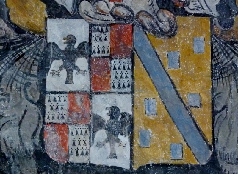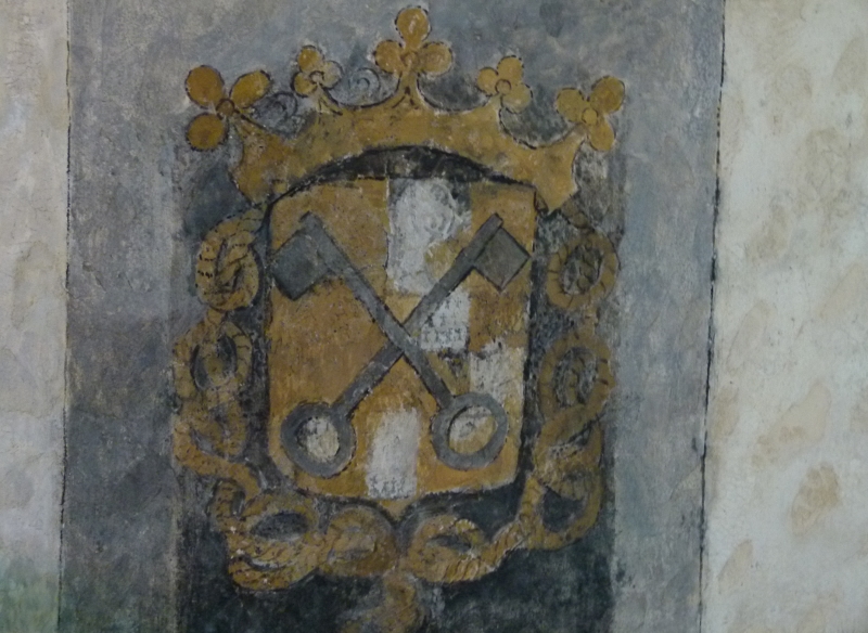 Des écus sont peints à l'intérieur d'églises ou de maisons.