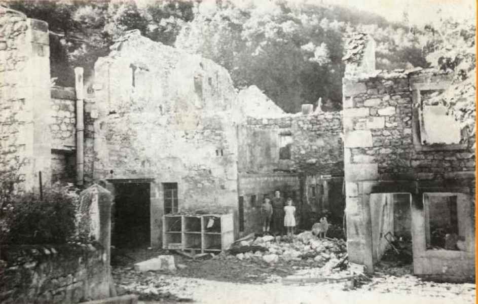 Les allemands repartent en fin d'après midi avec un troupeau de 75 vaches, des brebis, un porc, ... Ils laissent un village dont 23 bâtiments fument, seuls la maison BASSET, le four banal et la chapelle sont intacts.
