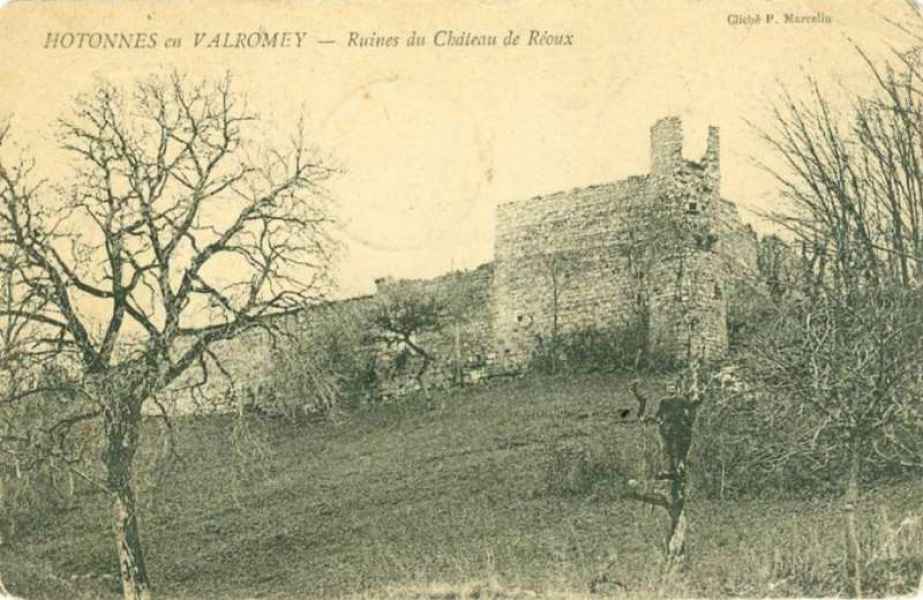 Il est possessionné par Perceval de LUYRIEU en 1400. N’ayant ni épouse ni enfant, il teste en faveur de son cousin Claude du SAIX, seigneur de Rivoire. Claude ODDINET devient seigneur de Réoux par achat de la seigneurie en 1560. Puis elle est revendue, vers 1600, à Gaspard de MALIVERT, seigneur de Conflans et de Corveissiat. La reprise de fief est datée du 05 juin 1602. Le fief consiste en un château et une maison forte. Il donne en bail la maison forte à Claude FAVRE, notaire d’Hotonnes, et à Pierre LYVET, avec condition de nommer des meuniers.